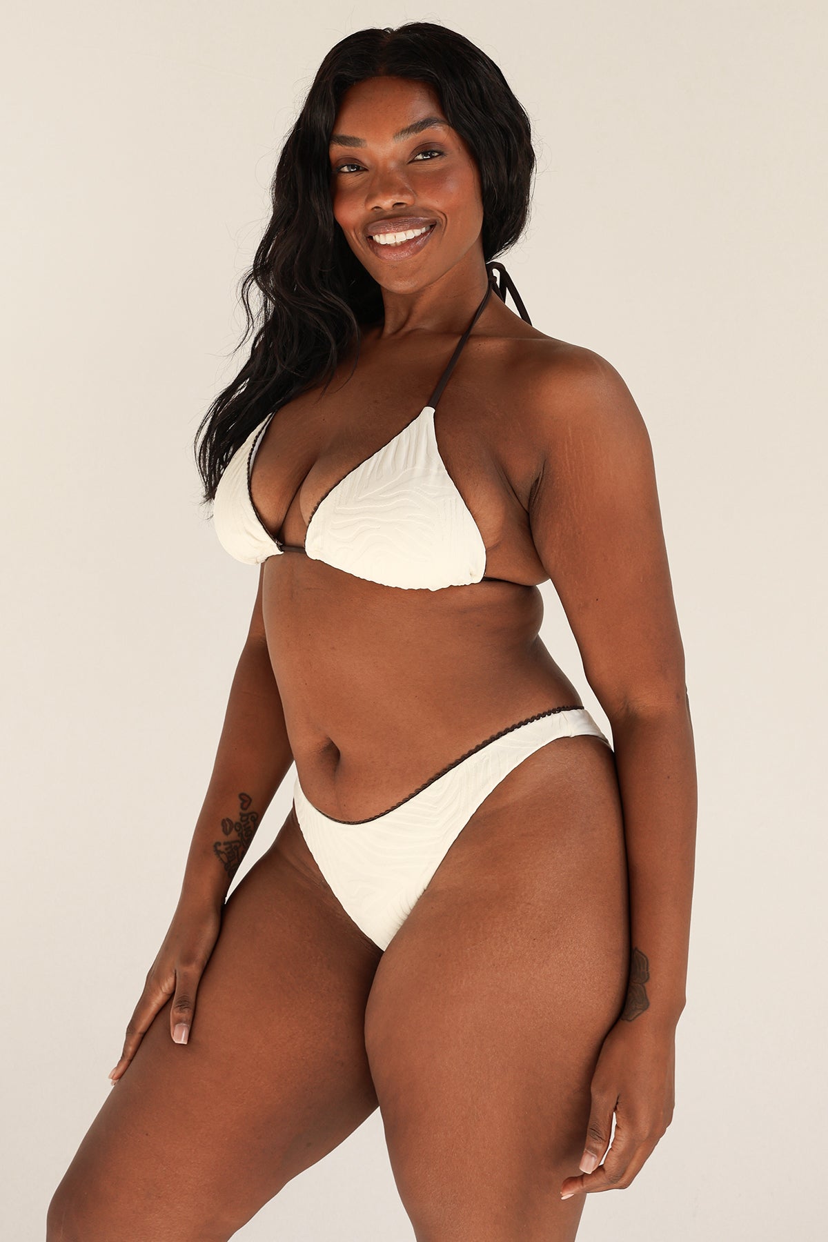 Our tried and true triangle tie back top. Its classic cut and simple silhouette will have you always reaching for it in your bikini drawer. This top pairs best with our matching Rosette Bottom.