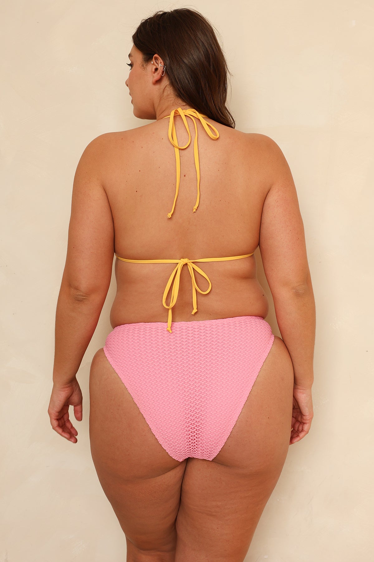 One of our most popular bottom styles. The high waisted and high cut silhouette will sculpt your legs and butt to perfection. The Seashore Bottom is one of the most versatile styles, but pairs great with our matching Palm Top.