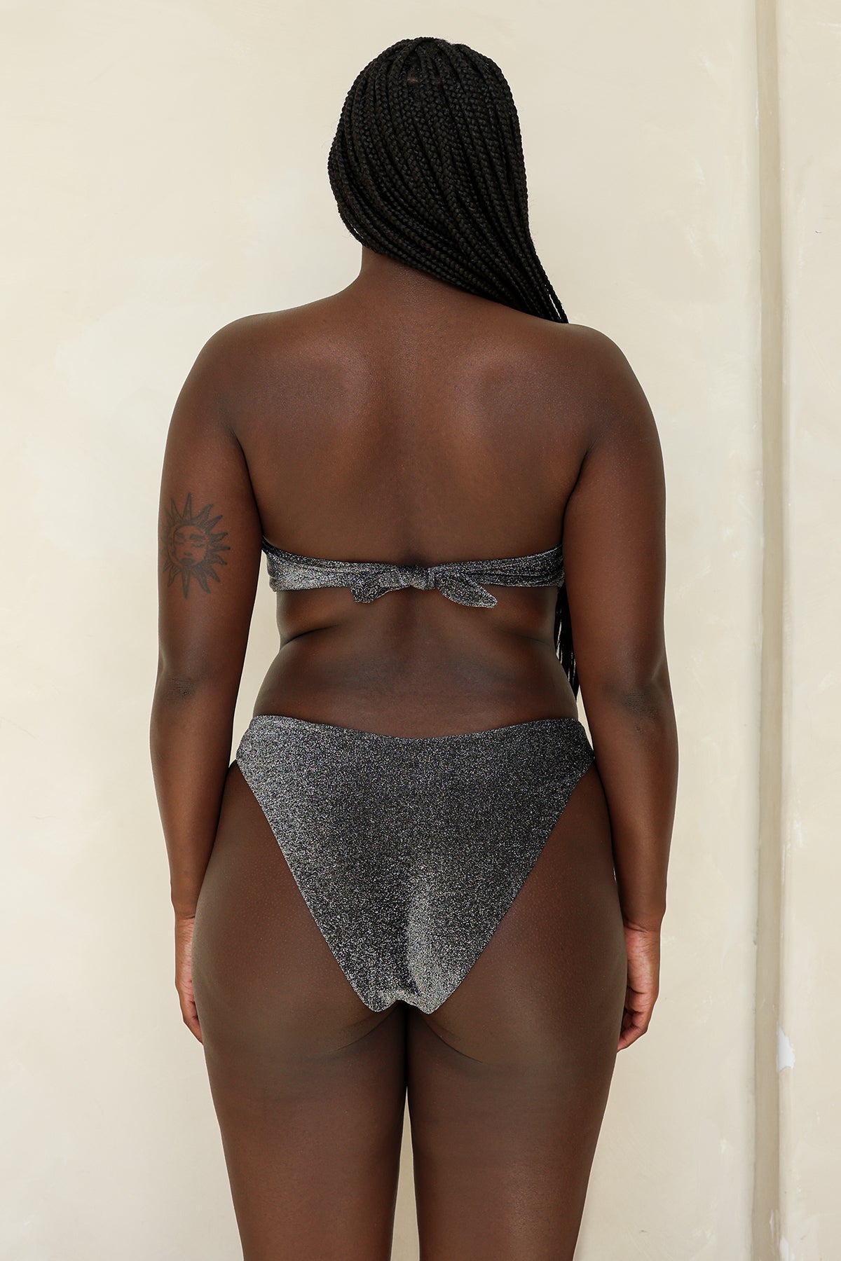 The Sparkle Black Underwire Cheeky Set was made to turn heads-featuring our west coast top in a fearless underwire silhouette paired with the seashore bottom in a statement-making cheeky cut. Drenched in the vibrant Sparkle Black hue, this set is your go-to for dancing all night and shining all day.